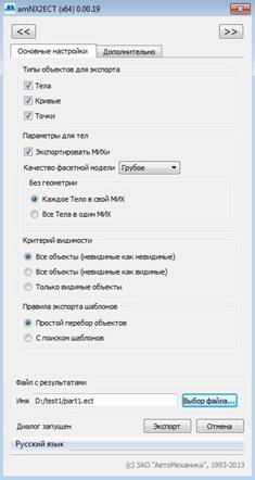 Описание настроек приведено в разделе «Основные настройка экспорта» главы «Экспорт с помощью конвертера» книги «Импорт данных из конструкторских САПР».