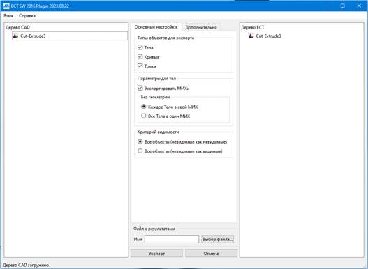 Рис. 4. Выбор инструмента Экспорт в ECT в SolidWorks